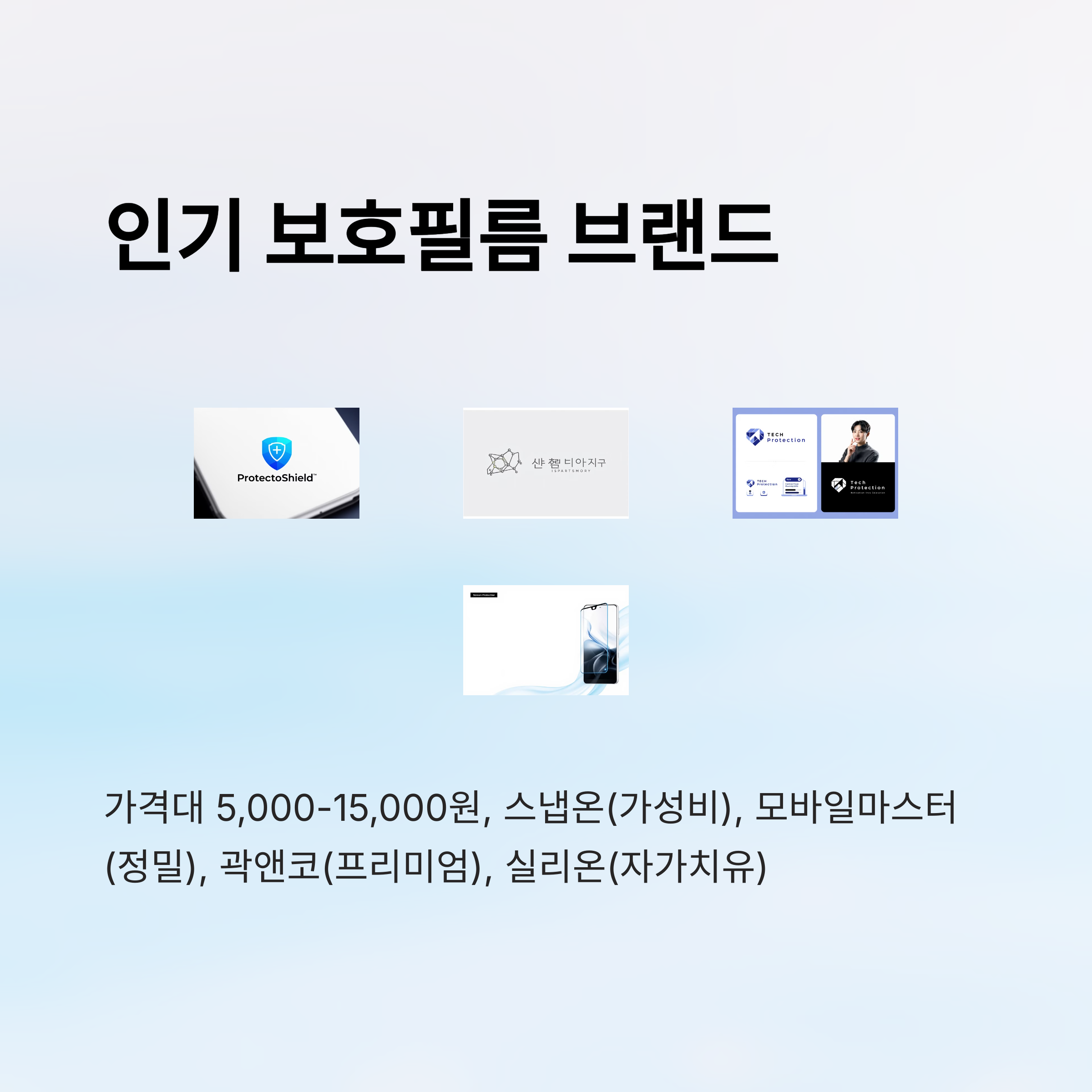 보호필름도 브랜드에 따라 품질 차이가 꽤 크다는 거 알고 계셨나요? 마감 처리, 코팅 기술, 접착력, 기포 방지 기술까지 정말 다양한 부분에서 브랜드 간 실력이 갈리기 때문에, 한 번 잘 골라두면 오랫동안 믿고 사용할 수 있어요 😊