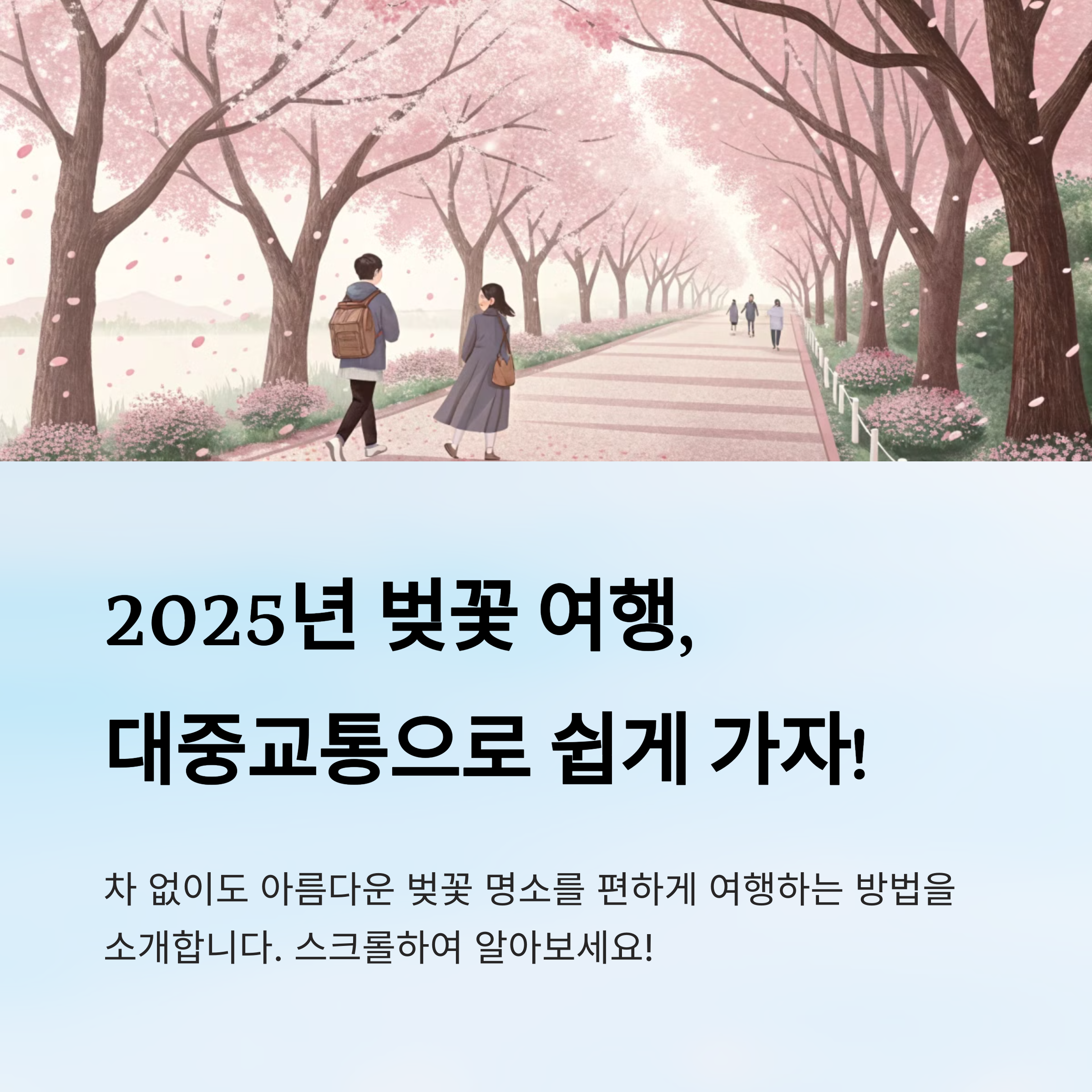 특히, 인기 벚꽃 명소들은 대중교통과 연결이 잘 되어 있어서 미리 노선을 확인하면 더 빠르고 편리하게 이동할 수 있어요. 오늘은 2025년 벚꽃 시즌을 맞아 대중교통으로 편하게 벚꽃 여행을 즐기는 방법을 소개할게요! 🌸😊