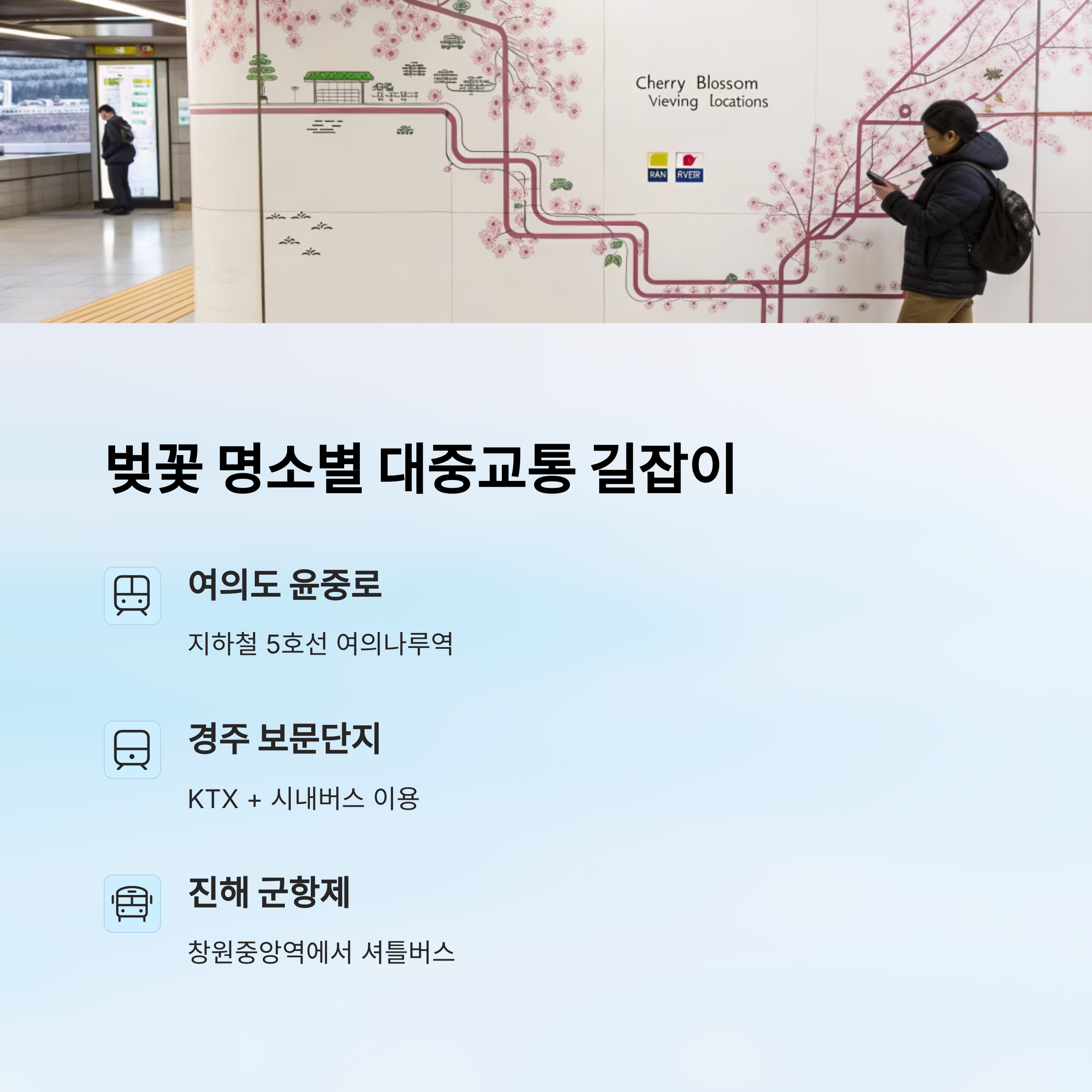 🚉 벚꽃 명소별 대중교통 이용 방법
