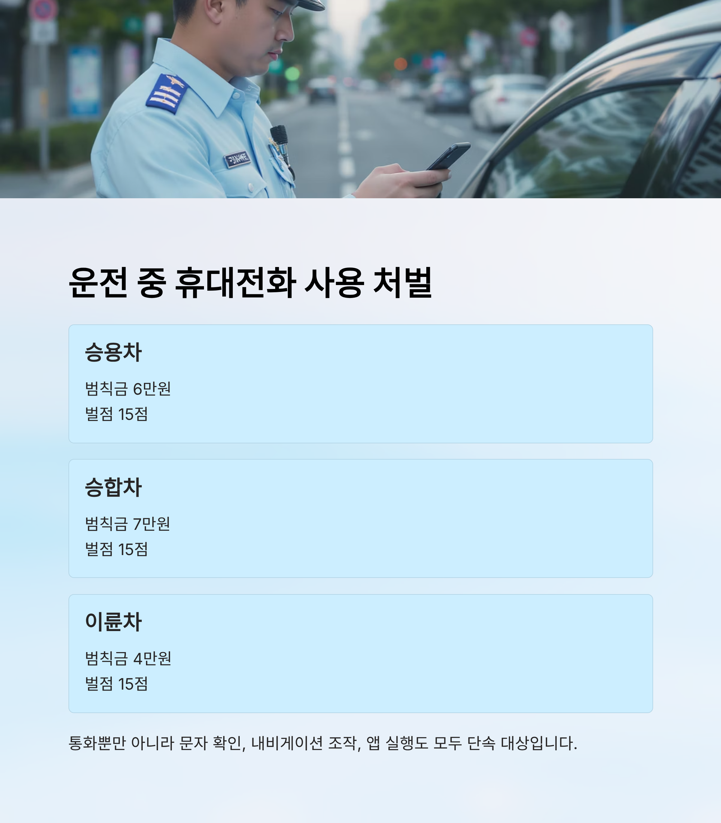 📊 차종별 운전 중 휴대전화 사용 처벌 비교표