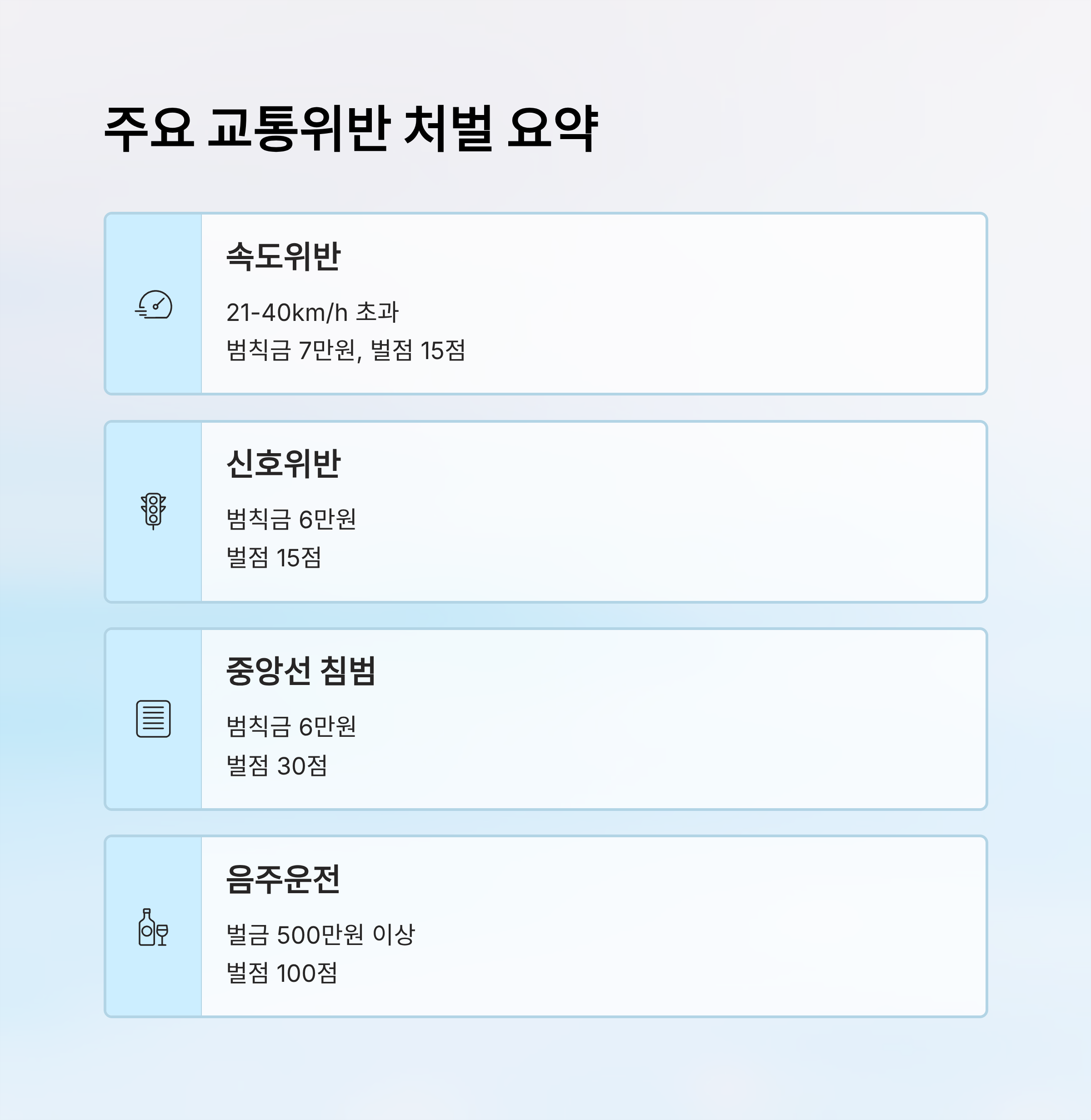 🧾 주요 교통법규 위반별 범칙금 및 벌점 정리