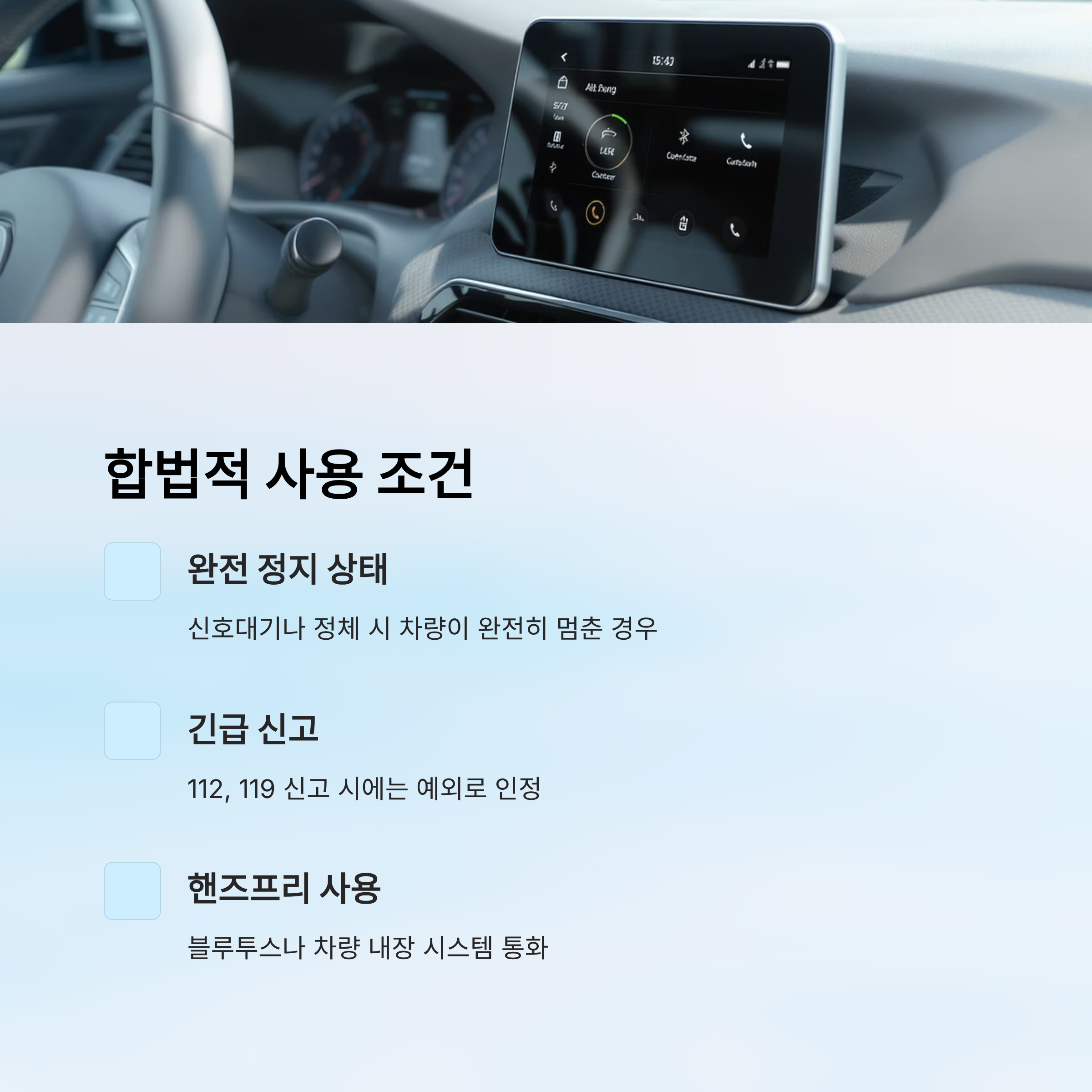 또한 긴급 상황도 예외로 인정돼요. 경찰, 소방, 구급차 등 긴급차량 운전자는 위급 상황에서 휴대전화를 사용할 수 있어요. 일반 운전자라도 112나 119 신고를 하는 경우에는 단속되지 않아요.