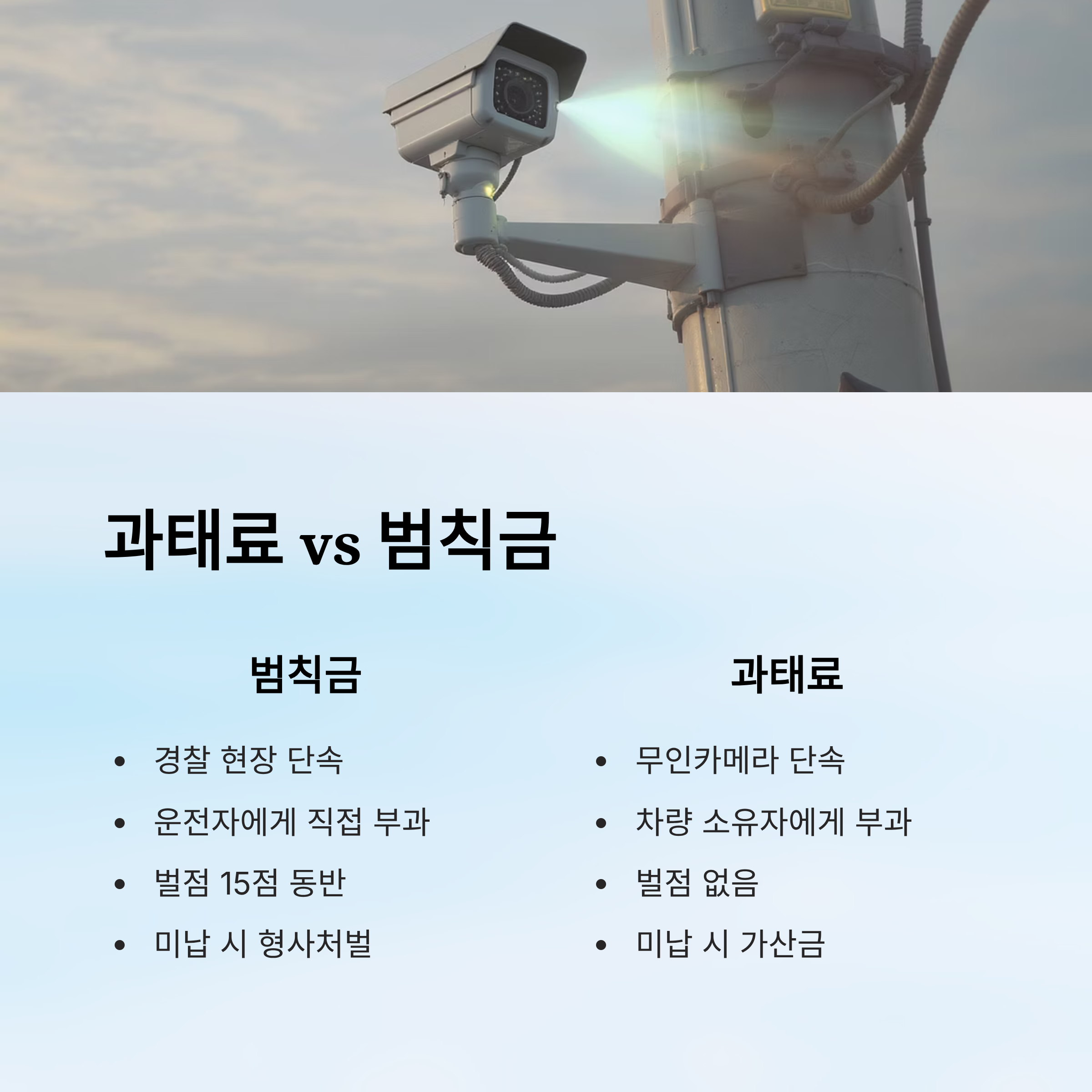 | 미납 시 조치 | 즉결심판 → 벌금형 | 가산금 → 차량 압류 가능 |