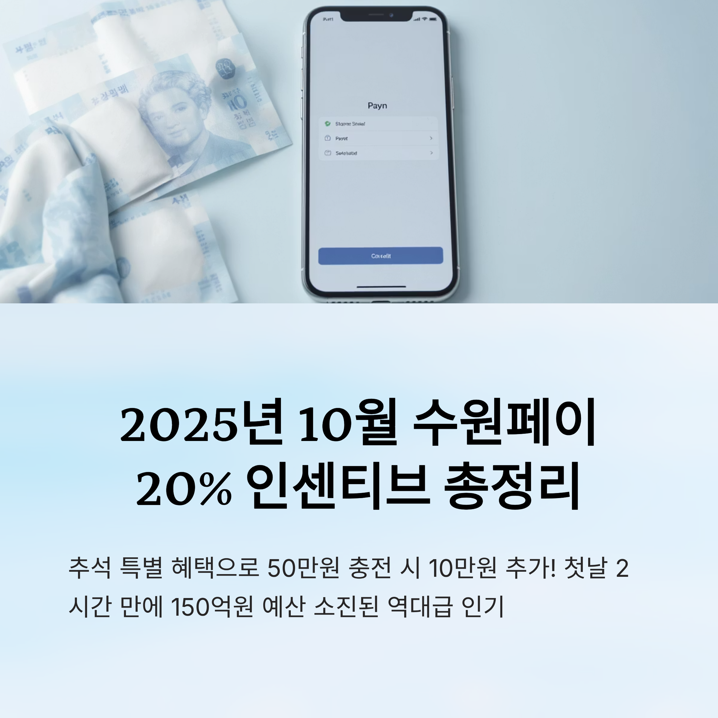 2025년 10월, 수원페이는 추석을 맞아 20% 인센티브라는 역대급 혜택을 제공하고 있어요. 특히 10월 1일 오전 9시에 시작된 충전은 단 2시간 만에 150억 원의 예산이 소진될 만큼 대단한 인기를 끌었답니다.