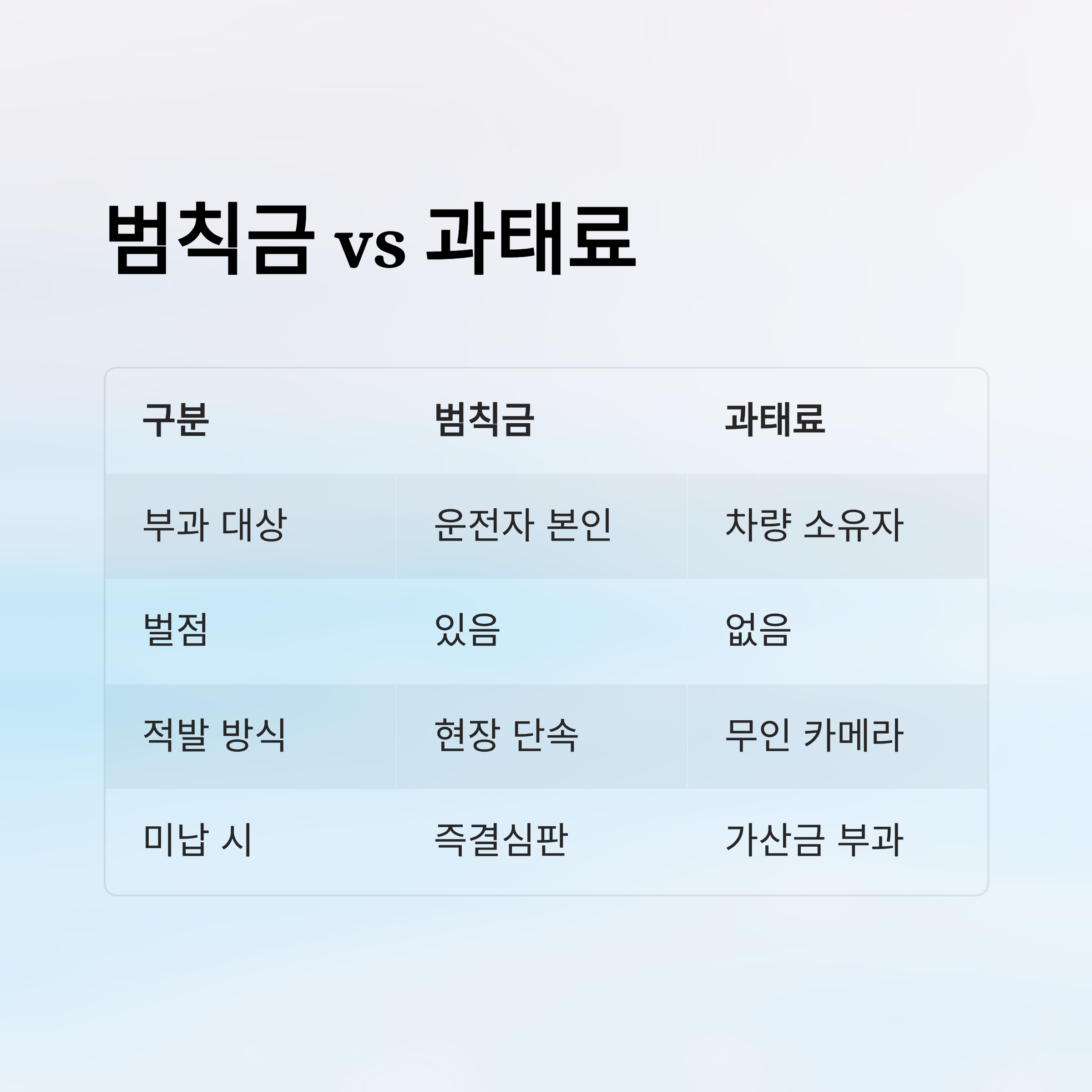 📊 교통법규 위반에 따른 제재 차이 표