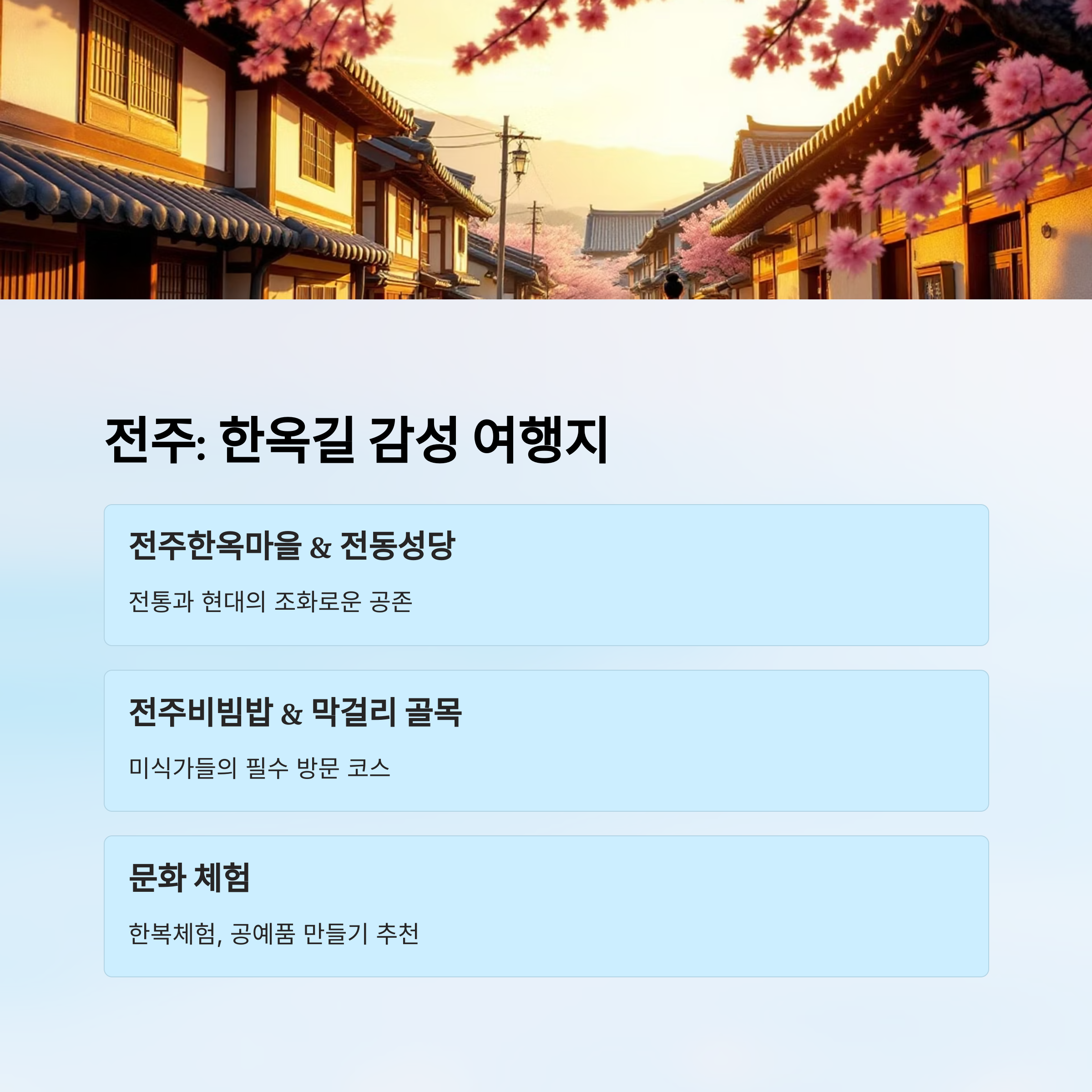 | 전주한옥마을 | 전통 한옥 거리 & 한복 체험 |