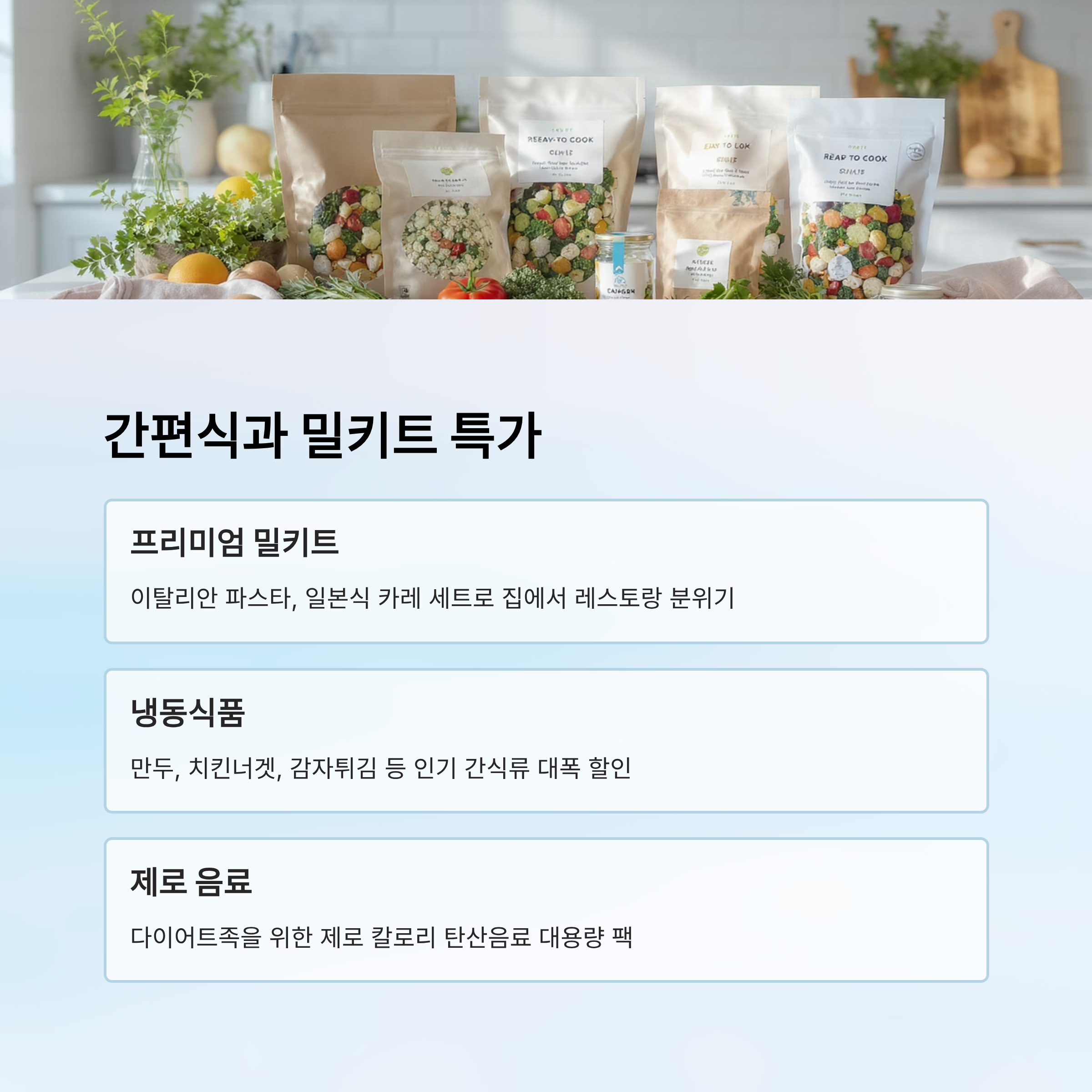 또한 이번 행사는 가정 내 소비 패턴을 반영해 ‘간편식·즉석식품’의 비중이 상당히 커졌어요. 요즘 1인 가구나 맞벌이 가정이 증가하면서 빠르고 편리하게 먹을 수 있는 상품들이 큰 인기를 얻고 있죠. 그래서 냉동식품, 밀키트, 프리미엄 HMR(Home Meal Replacement)까지 할인 품목에 대거 포함되었어요. 특히 유명 레스토랑과 협업한 밀키트는 가정에서도 외식 같은 분위기를 낼 수 있어 소비자 만족도가 높답니다. 🍲