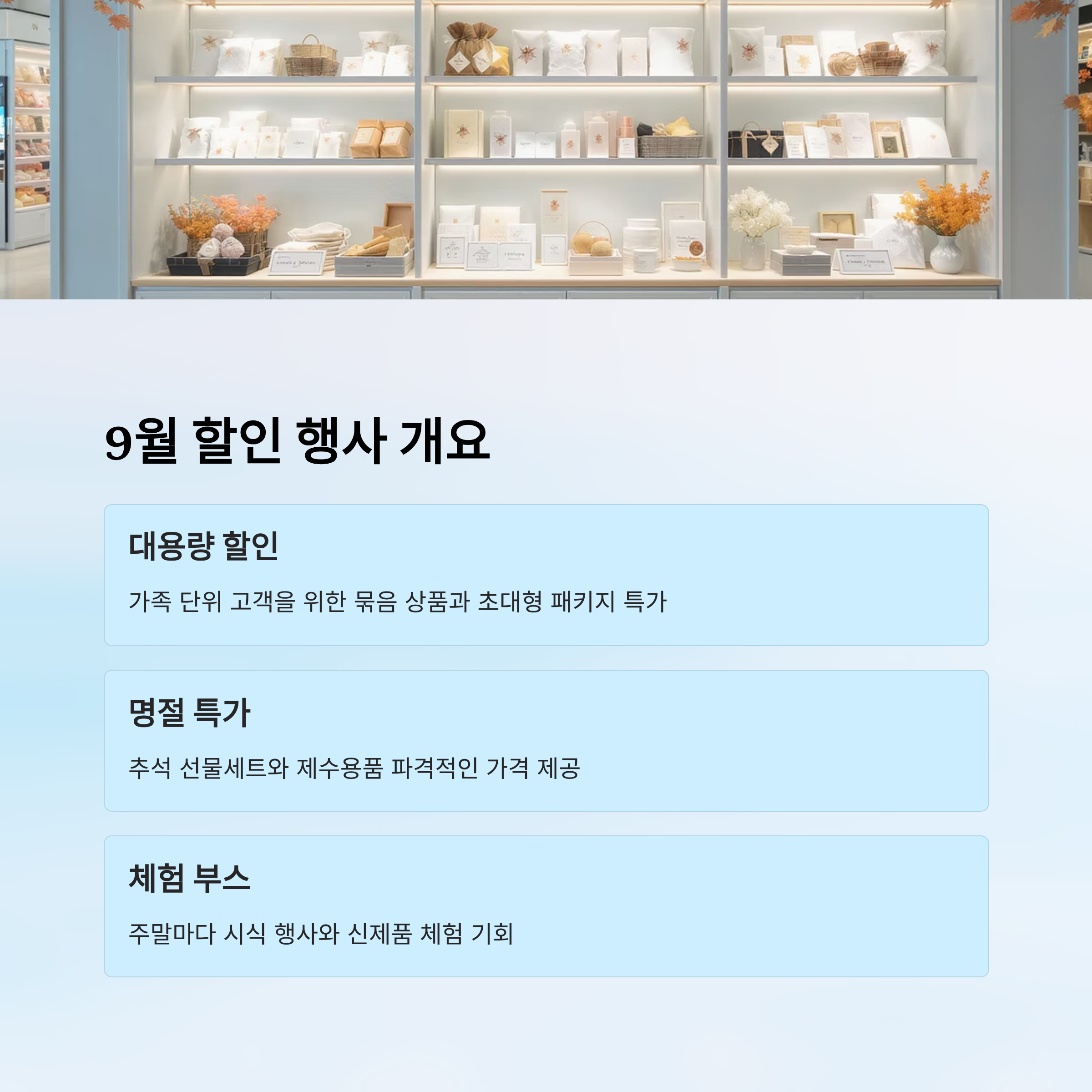 특히 이번 달에는 추석 명절을 앞두고 있어서 선물세트, 제수용품, 대용량 간식 등이 파격적인 가격에 준비되어 있어요. 내가 생각했을 때 이번 9월은 소비자 입장에서 가장 풍성하게 느껴질 수 있는 행사라 기대해도 좋을 것 같아요.