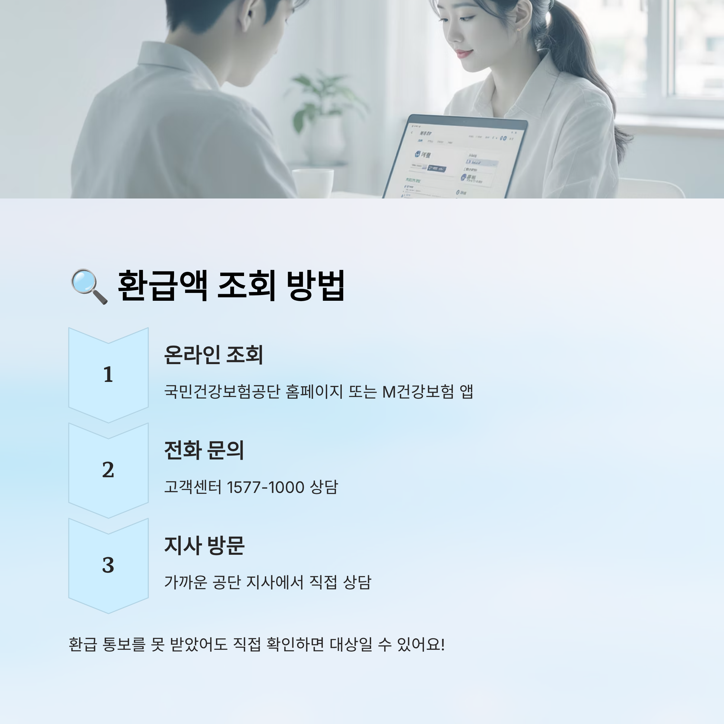 만약 환급 대상인데도 아직 연락을 못 받았다면, 직접 조회가 가능해요. 국민건강보험공단 홈페이지 또는 앱에서 본인 인증 후 조회하면 돼요.