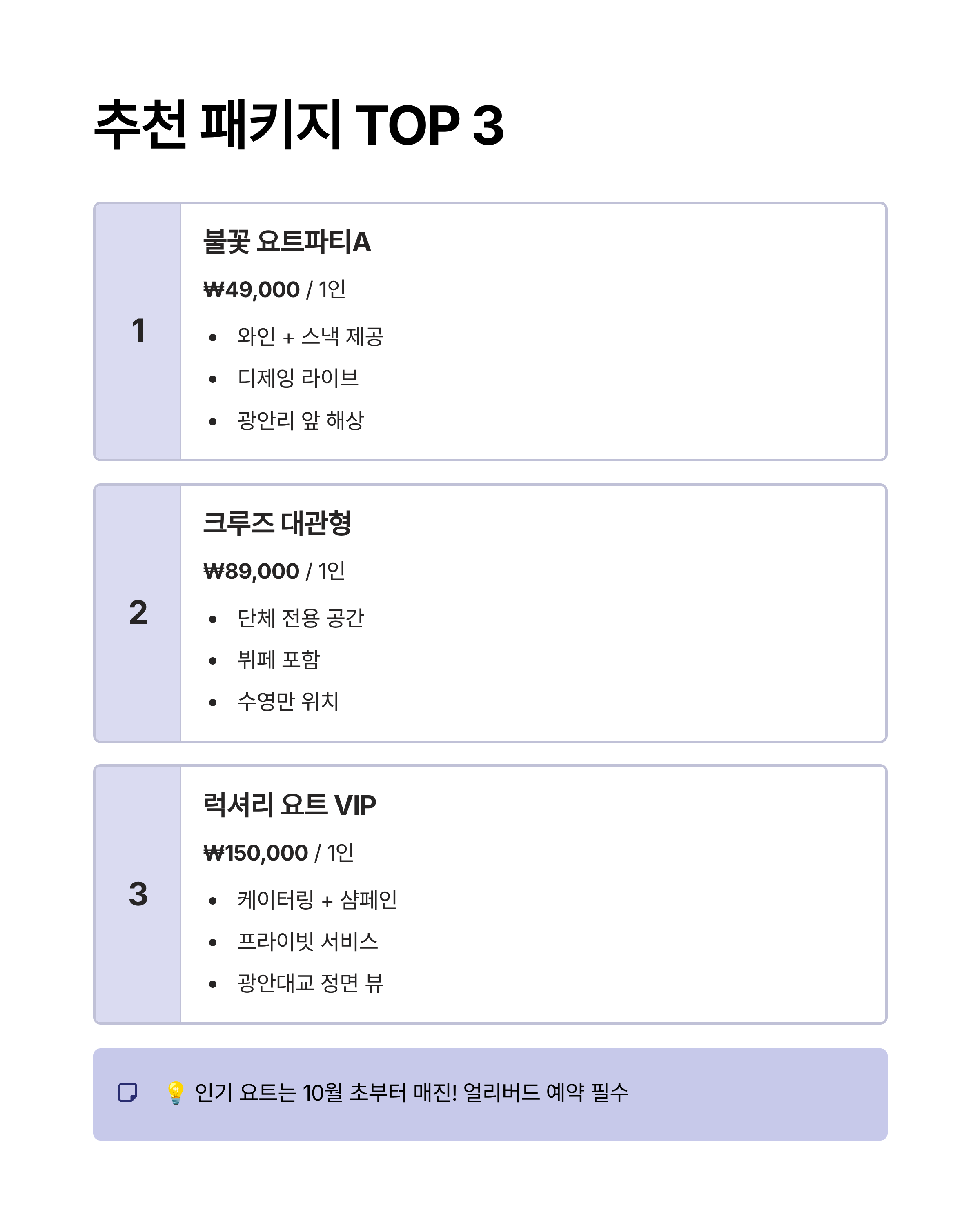 🚤 추천 요트/크루즈 패키지 TOP 5