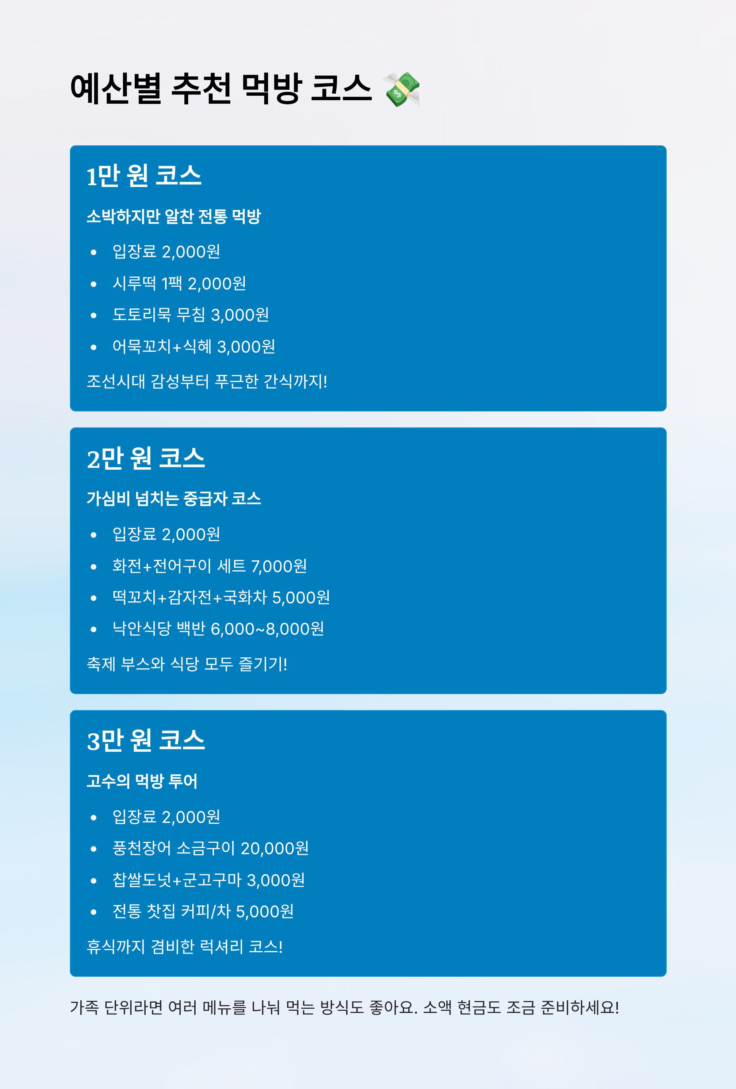 💡 예산별 먹방 루트 한눈에 보기