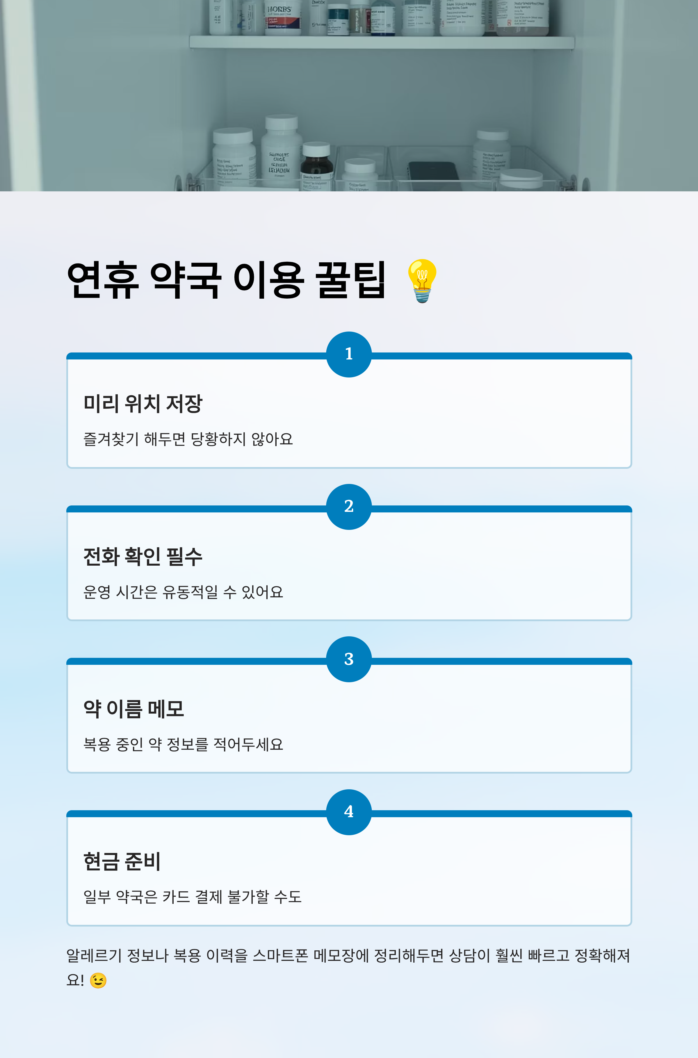 약국이 아무리 연휴에도 열린다고 해도, 사람이 몰리면 대기 시간이 길어질 수 있어요. 그래서 미리 준비하고, 현장에서 빠르게 이용하는 팁들을 소개할게요!