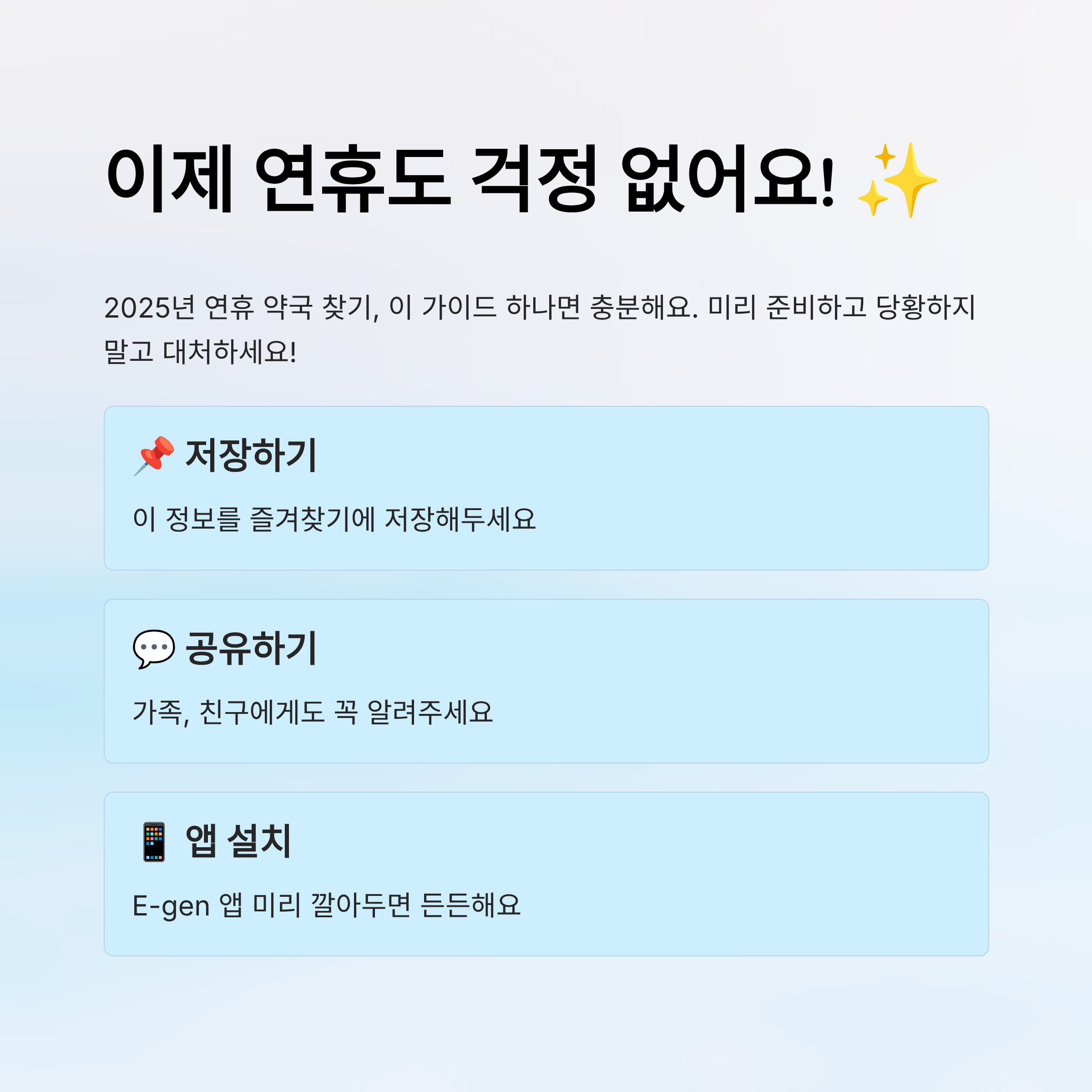 4. **현금도 챙기기**: 일부 약국은 연휴 중 카드 결제가 안 될 수도 있어요!