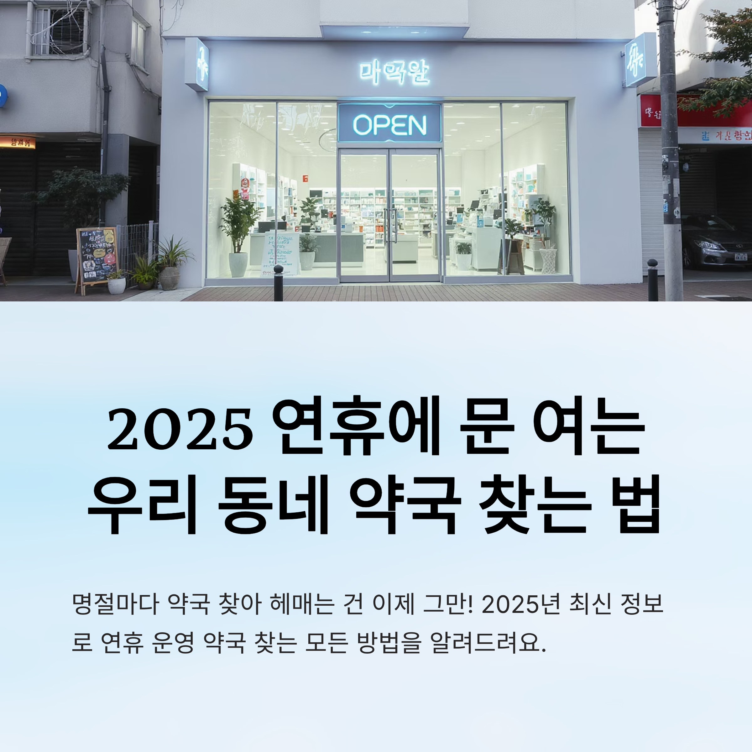 "명절마다 약국 찾느라 길을 헤매는 건 이제 그만!" 연휴에 약국 문 닫는 경우, 누구나 한 번쯤 겪어봤을 거예요. 특히 감기약 하나, 소화제 하나 구하려다 다섯 군데를 돌아다니는 건 정말 속상하죠.