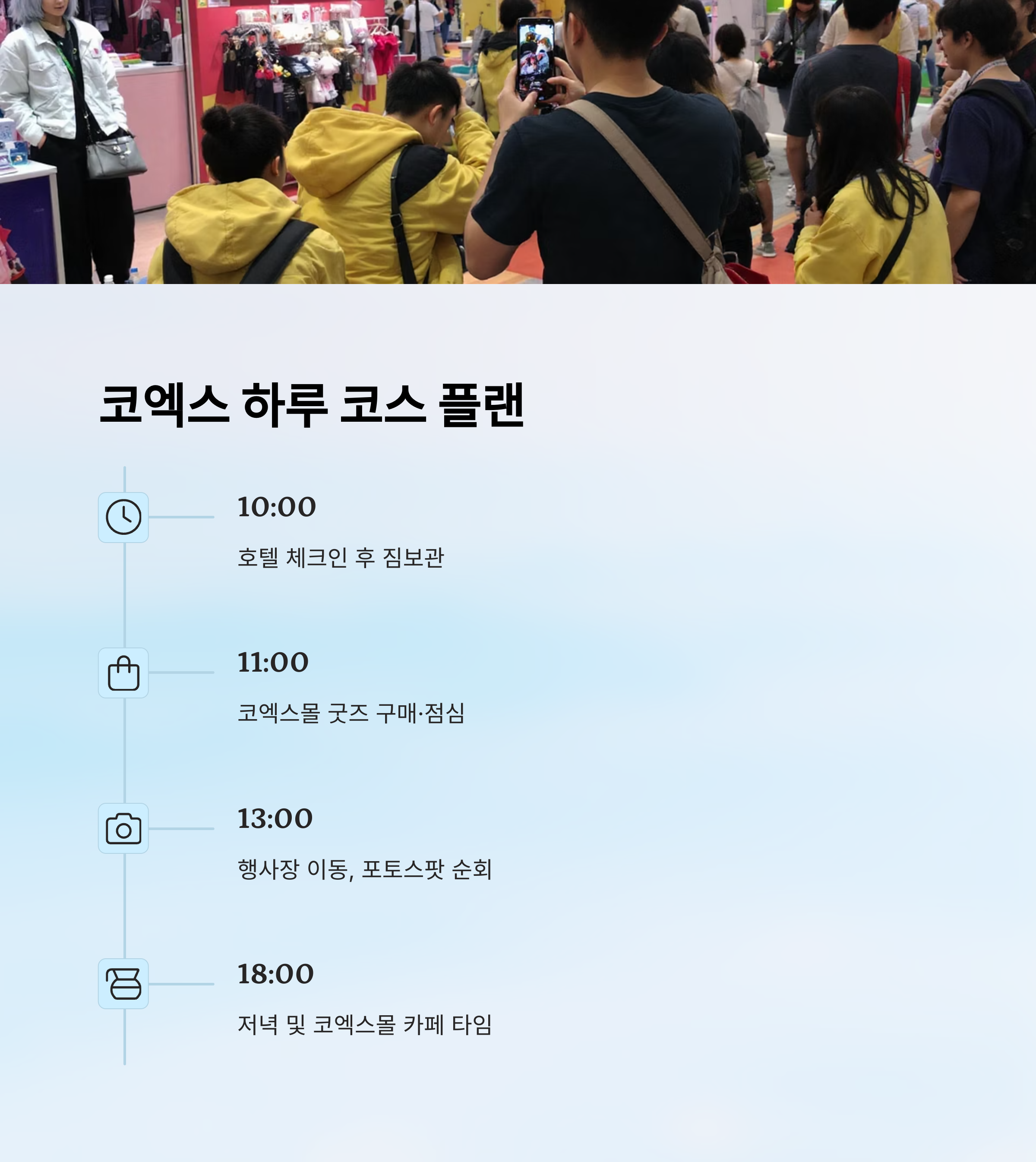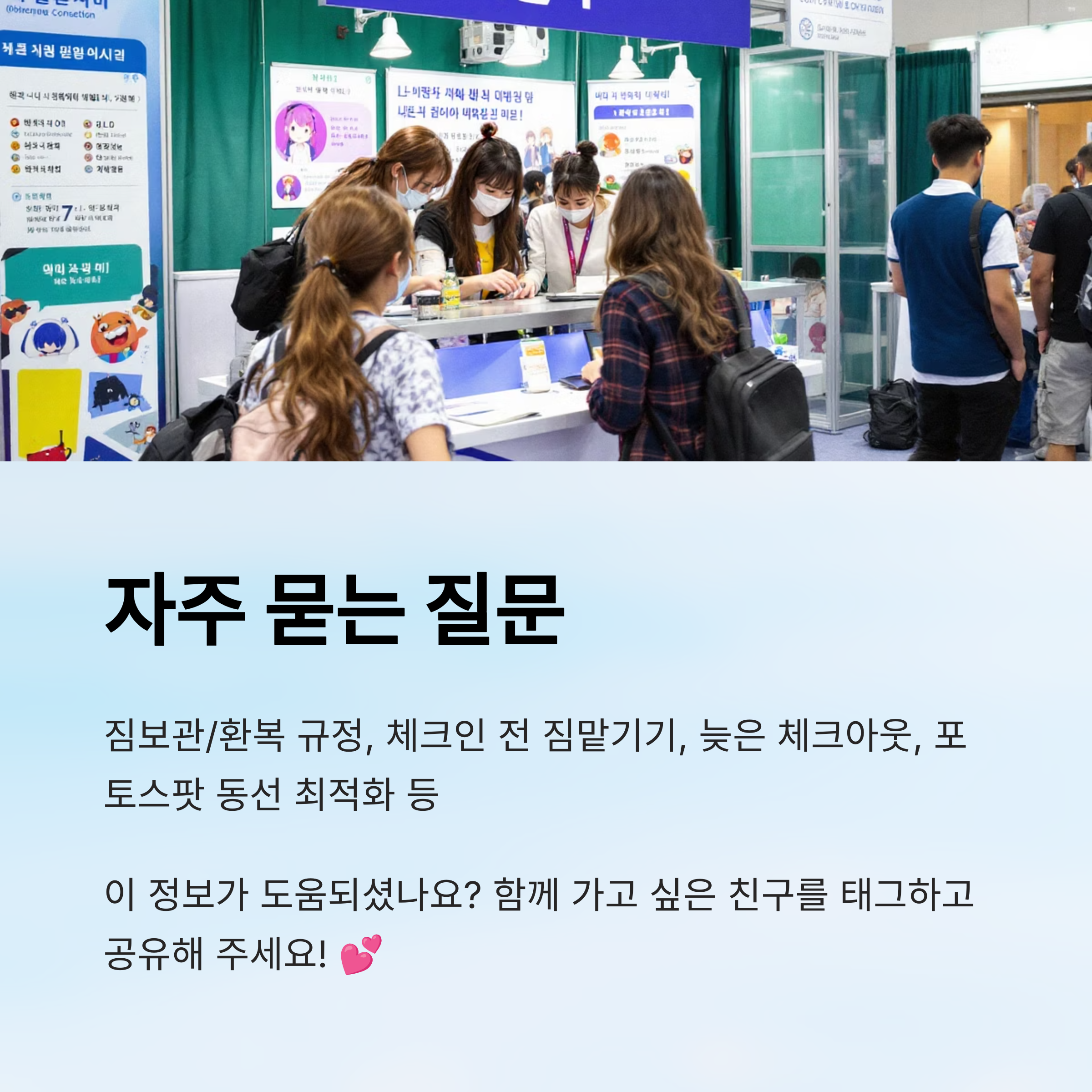 그래서 준비했어요! 코엑스·킨텍스 기준으로 거리, 가성비, 덕후 맞춤 체크리스트 기반 숙소·맛집 리스트! 👇