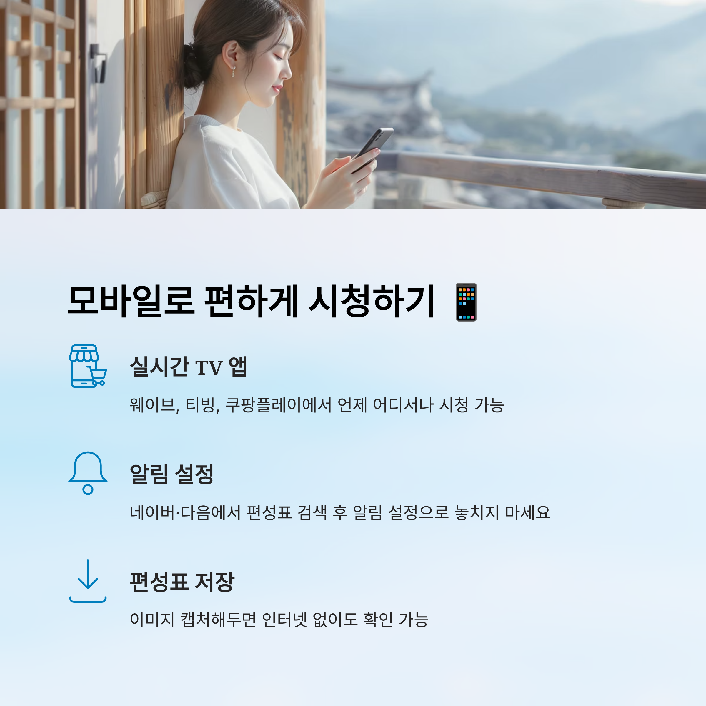 명절엔 이동 중이거나, 집에서도 TV 앞에 오래 앉아 있기 힘든 경우가 많죠? 그래서 요즘은 모바일로 특선영화 편성표를 확인하거나, 아예 스마트폰으로 영화를 시청하는 분들도 많아요. 저도 자주 그렇게 본답니다 😊