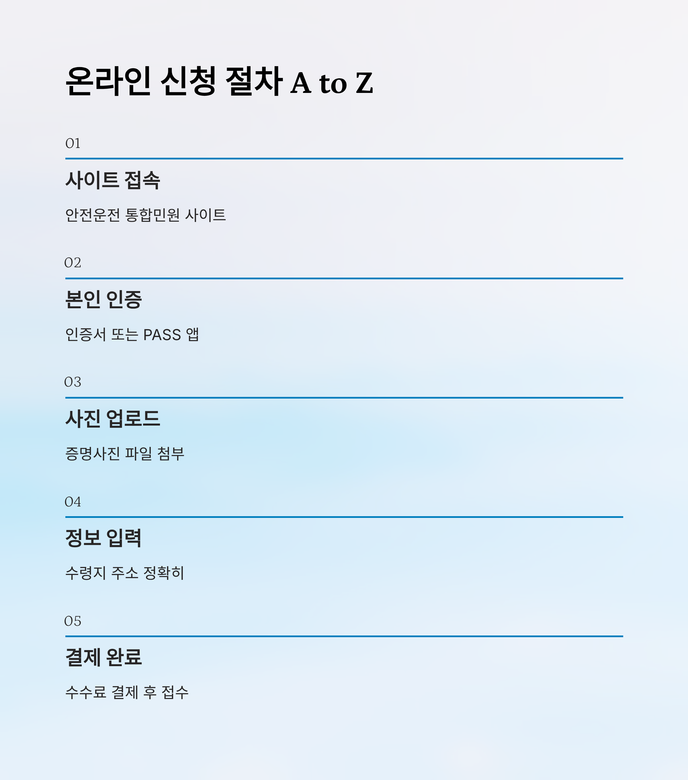 온라인 신청은 도로교통공단 안전운전 통합민원 사이트 또는 모바일 앱에서 가능해요. PC와 스마트폰 모두 지원하며, 인증서만 있으면 본인 확인도 아주 간단하게 끝나요.
