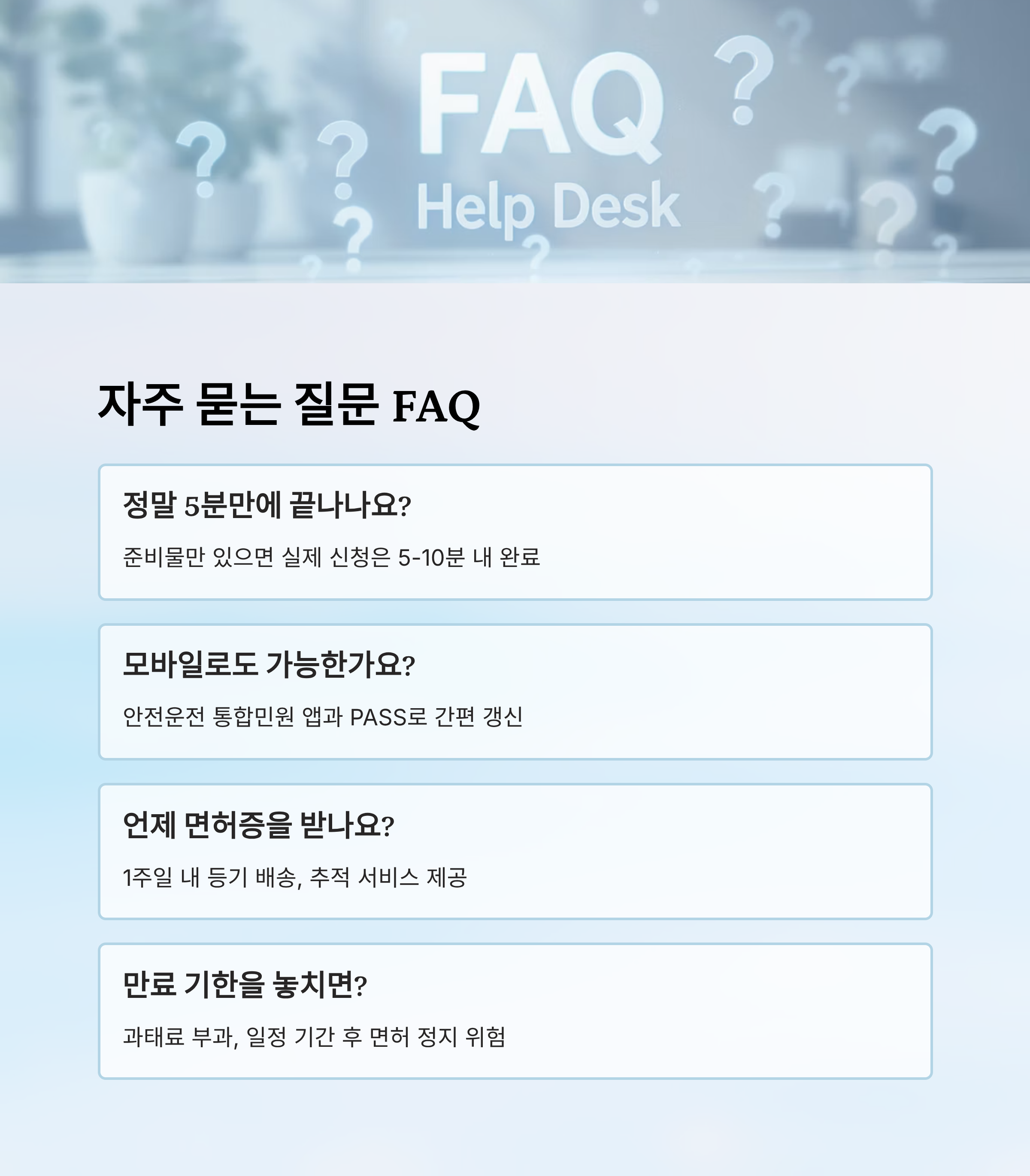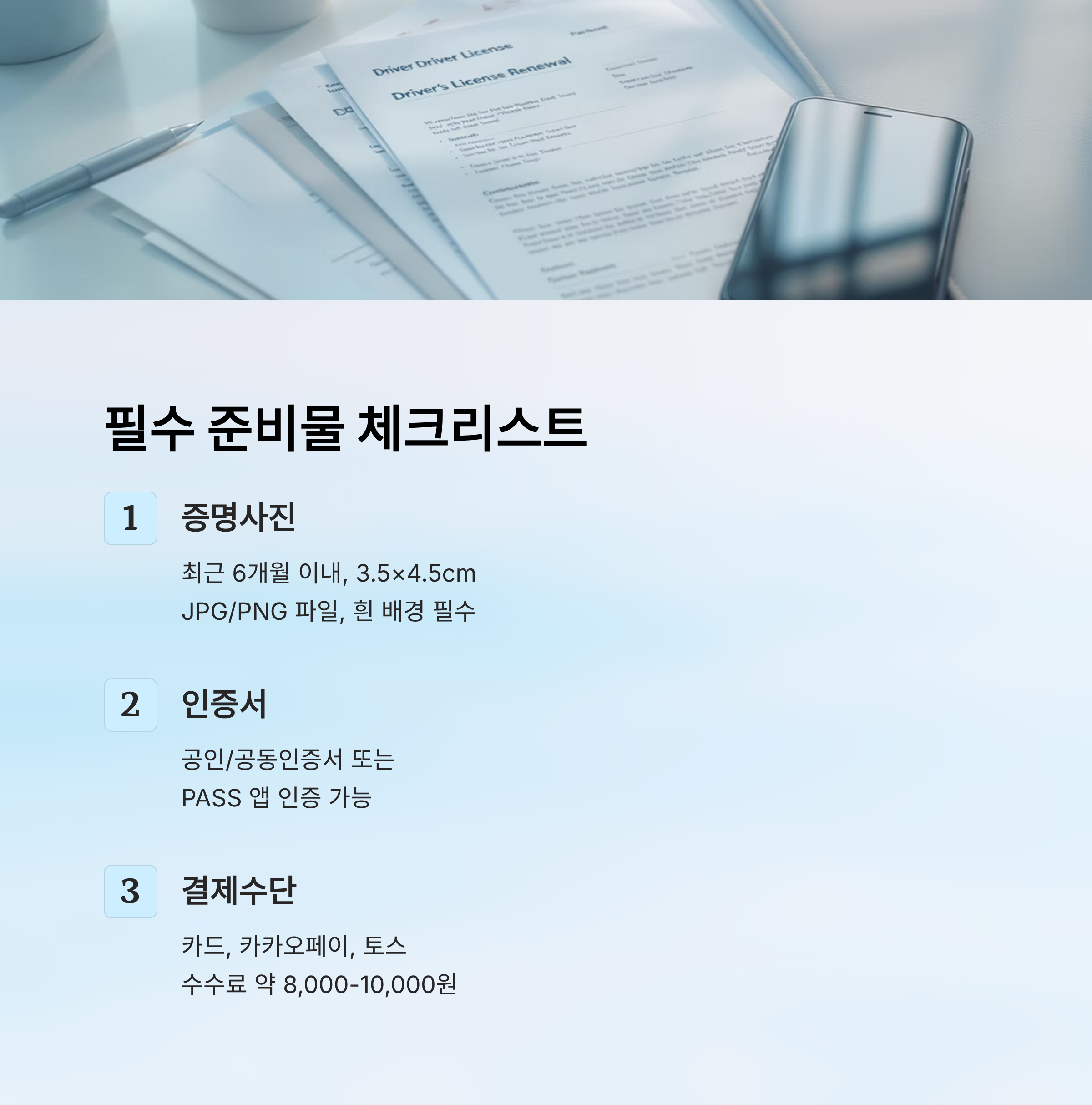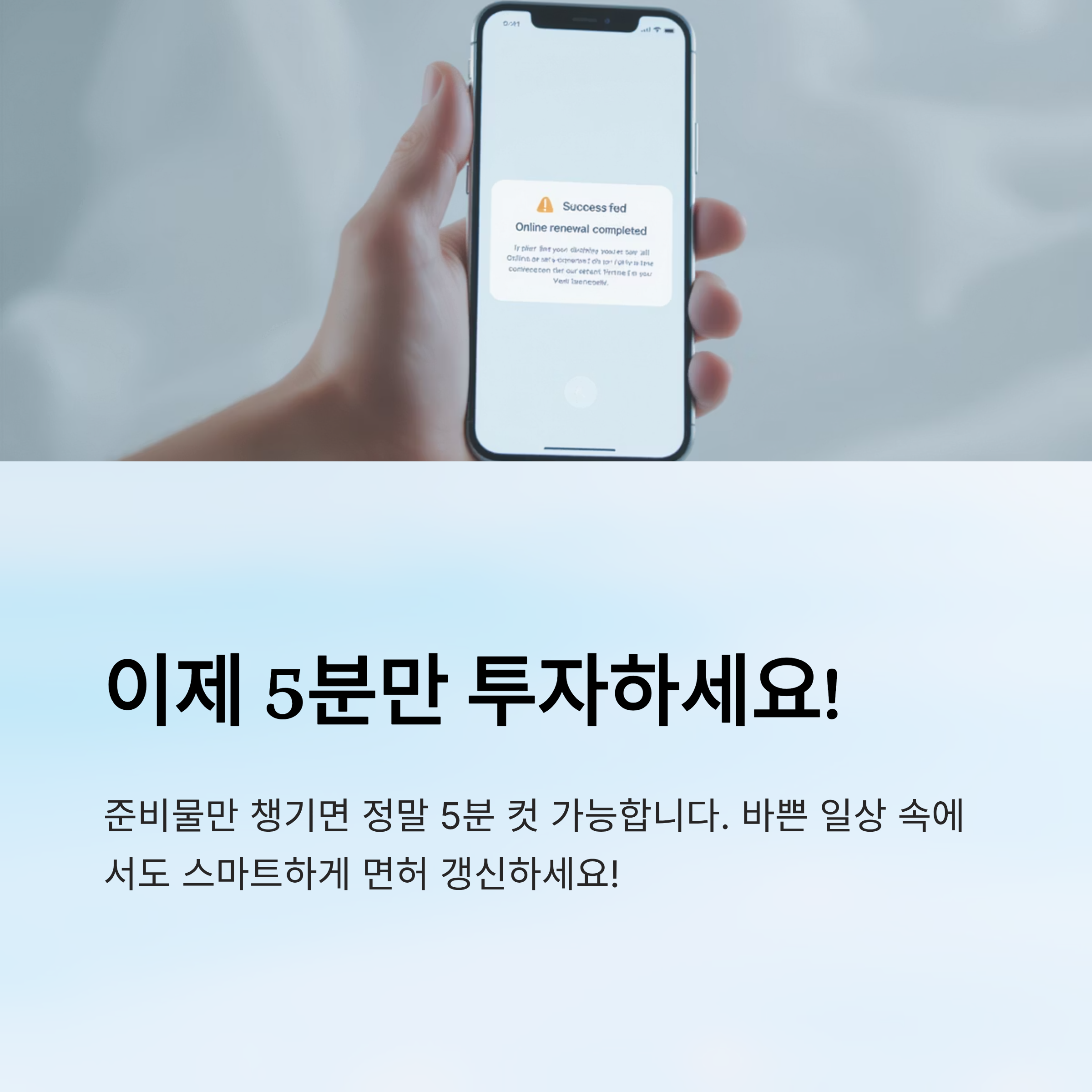 온라인 갱신 시 본인 인증과 사진 제출만 정확히 진행되면 별다른 대면 절차 없이 자동으로 처리돼요. 서류 준비만 미리 해둔다면 말 그대로 '5분 컷'이 진짜 가능하죠. 지금부터 그 서류들까지 확실하게 정리해볼게요! 📋