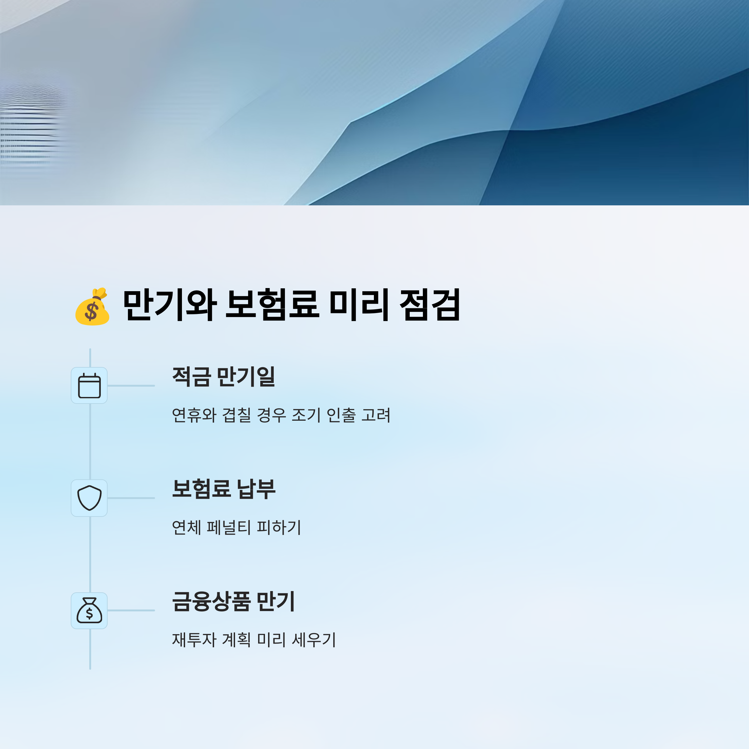 연휴 중 가장 놓치기 쉬운 항목 중 하나가 바로 보험료 납부와 적금 만기일이에요. 이 두 가지는 날짜 하나만 놓쳐도 생각보다 큰 손해가 생길 수 있거든요. 보험은 계약 유지에 영향을 주고, 적금은 이자 손해로 이어질 수 있어서 정말 중요한 포인트예요.