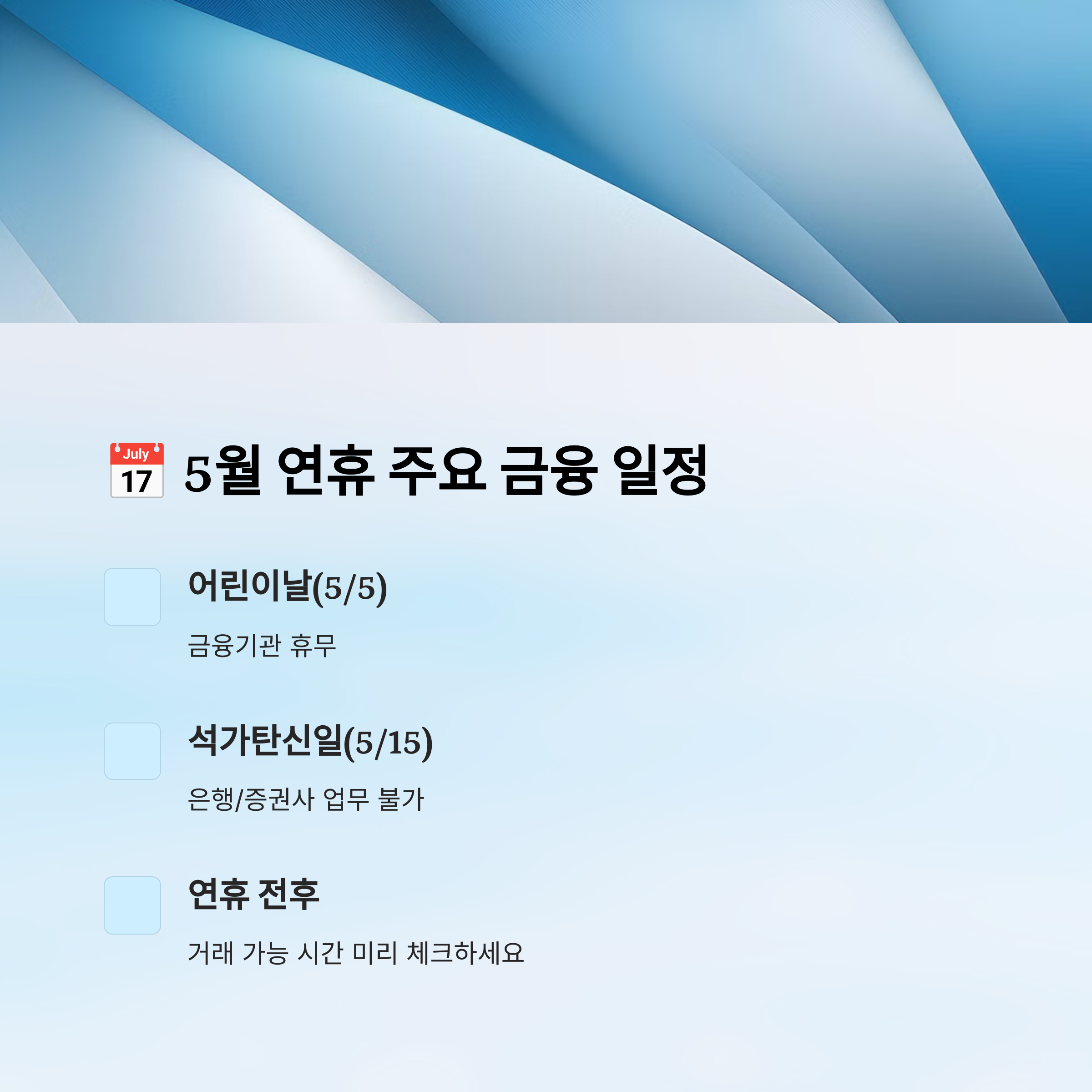 📅 5월 연휴 주요 금융 일정