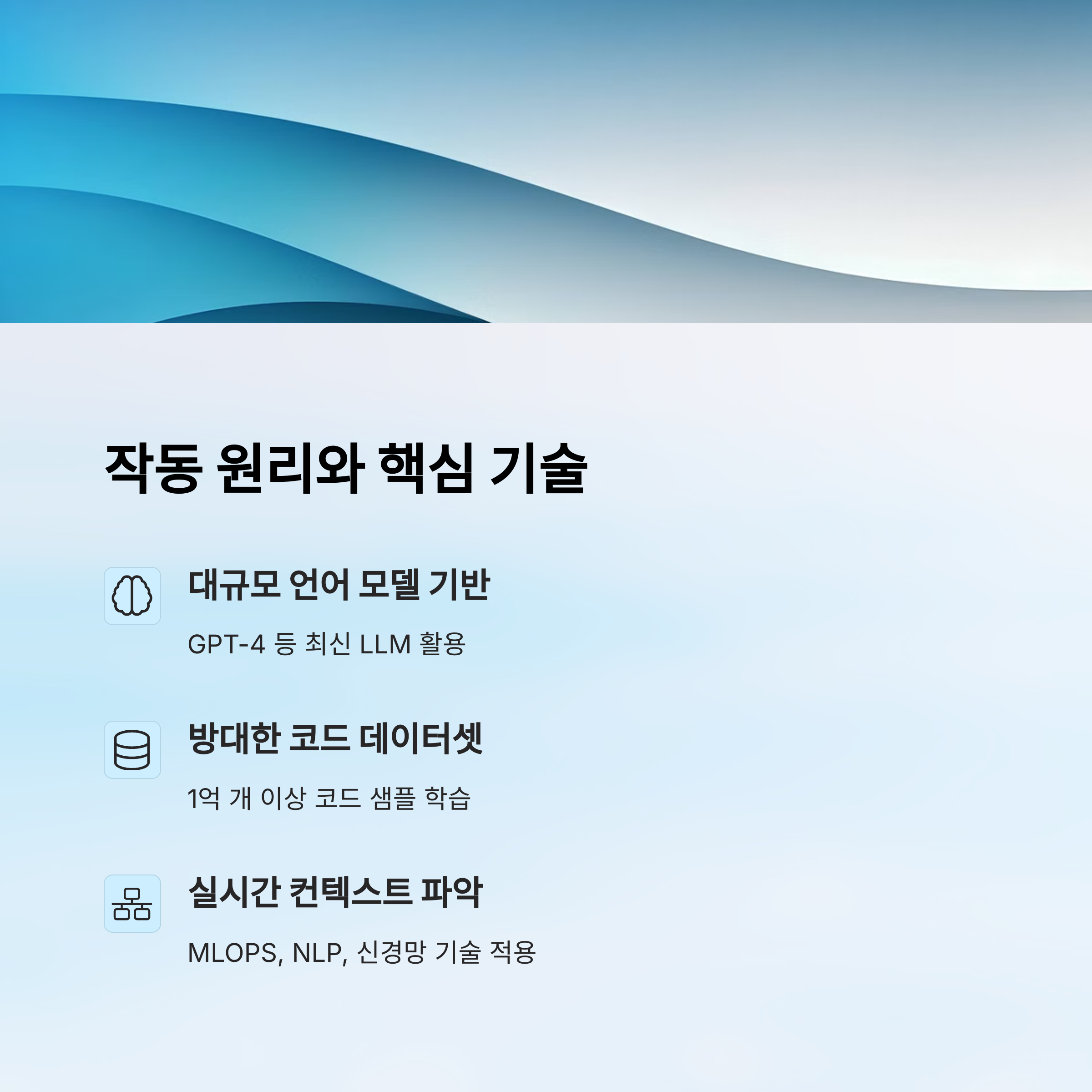그 과정에서 사용되는 기술은 자연어 처리(NLP), 인코더-디코더 아키텍처, 어텐션 메커니즘, 그리고 트랜스포머 구조에 기반한 딥러닝이에요. 특히 GPT 기반 모델은 인간이 쓰는 언어와 코드 사이의 공통적인 논리를 이해하도록 설계됐어요. 그래서 코드 설명도 잘하고, 주석도 직접 달아줄 수 있죠.