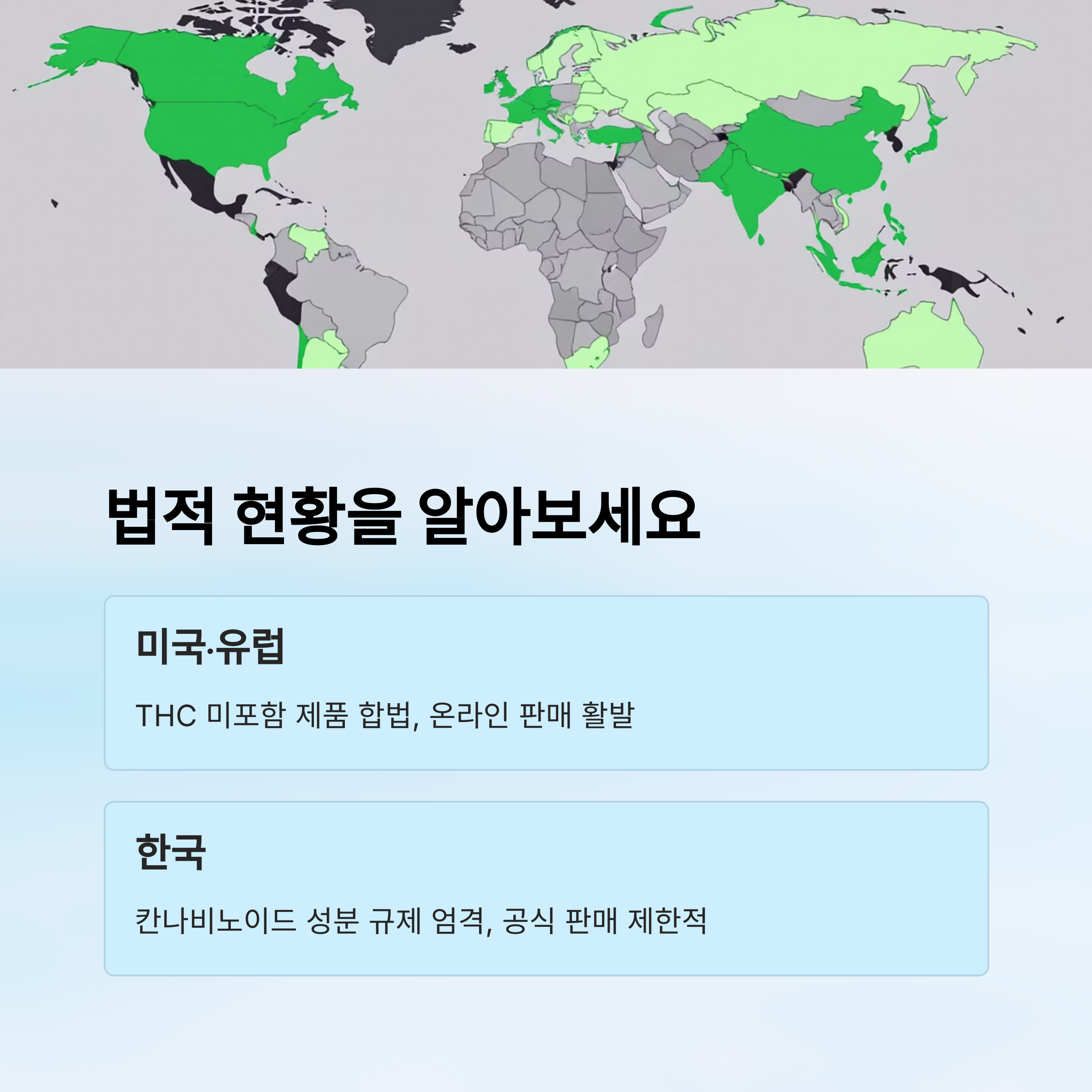 한국은 현재 CBD만 제한적으로 수입 및 의약용으로 허용된 상태이며, CBG는 아직 명확한 규정이 없어요. 하지만 최근 웰빙 산업이 성장하면서 관련 법 개정 논의가 활발해지고 있어요.