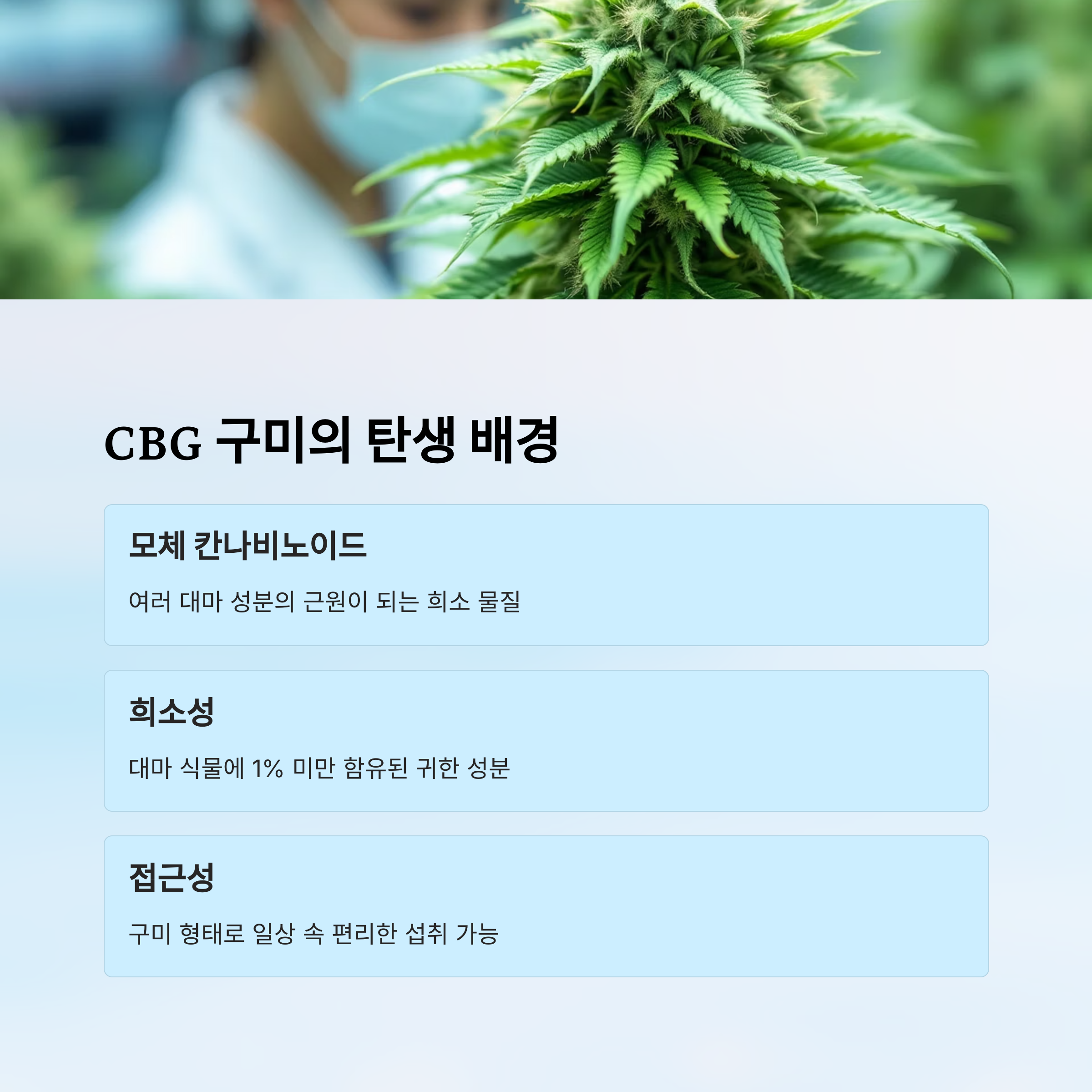 이 성분은 처음에는 대마 식물에서 아주 미량만 발견돼 상업적으로 추출이 어려웠어요. 하지만 최근에는 유전자 조작이나 선택적 재배 기술을 통해 CBG 함량이 높은 품종들이 개발되면서 본격적인 제품화가 가능해졌죠.