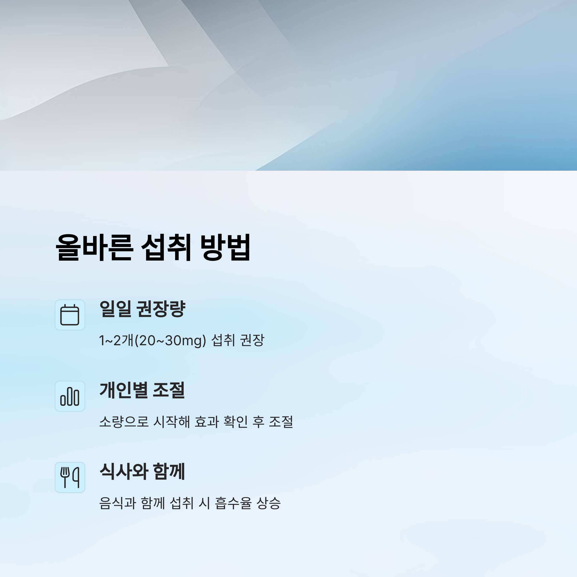 다만, 지나치게 많이 섭취한다고 해서 효과가 배로 늘어나는 건 아니에요. 오히려 몸에 부담을 줄 수 있기 때문에 천천히 체내 적응을 유도하는 것이 중요해요. 꾸준히 매일 섭취하는 게 가장 효과적이에요.