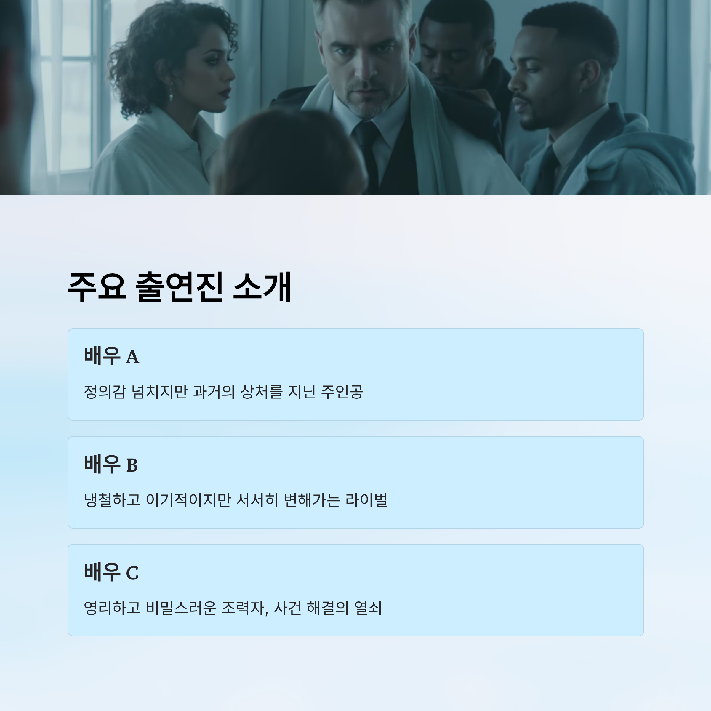| 배우 A | 주인공 | 정의롭지만 상처 있음 | 사건의 중심 |